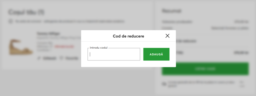 In partea de jos a paginii de finalizare a comenzii vei vedea un camp special pentru “cod de reducere” sau “voucher”.